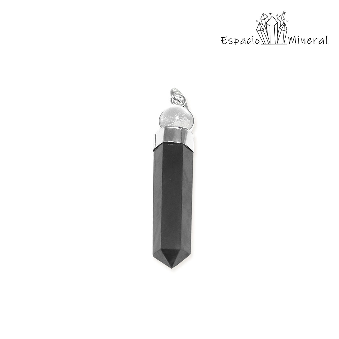 Colgante punta de Shungit con esfera de Cuarzo blanco