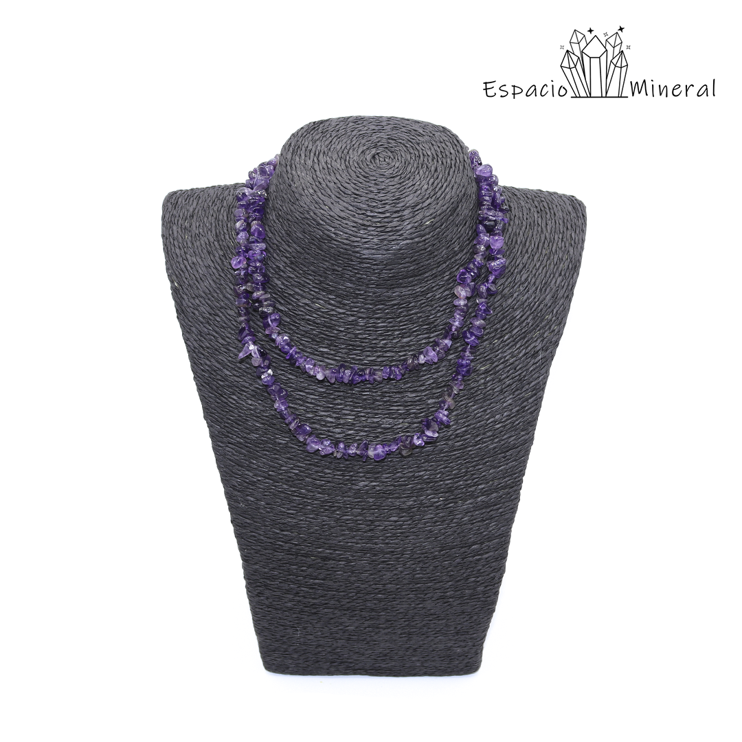 Collar de chips de Amatista calidad extra. Tamaño largo total 85 cm, cerrado 43 cm aprox.