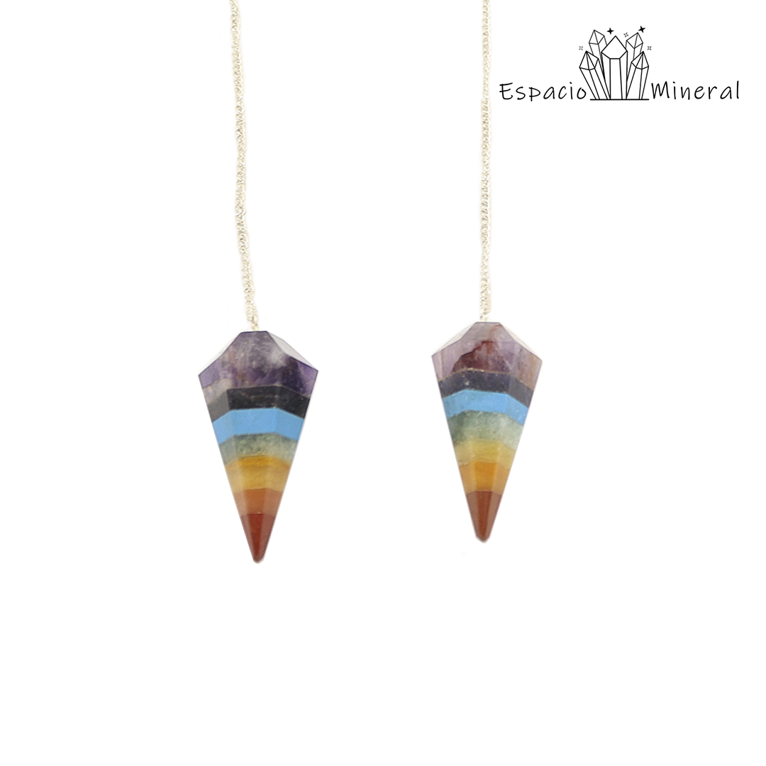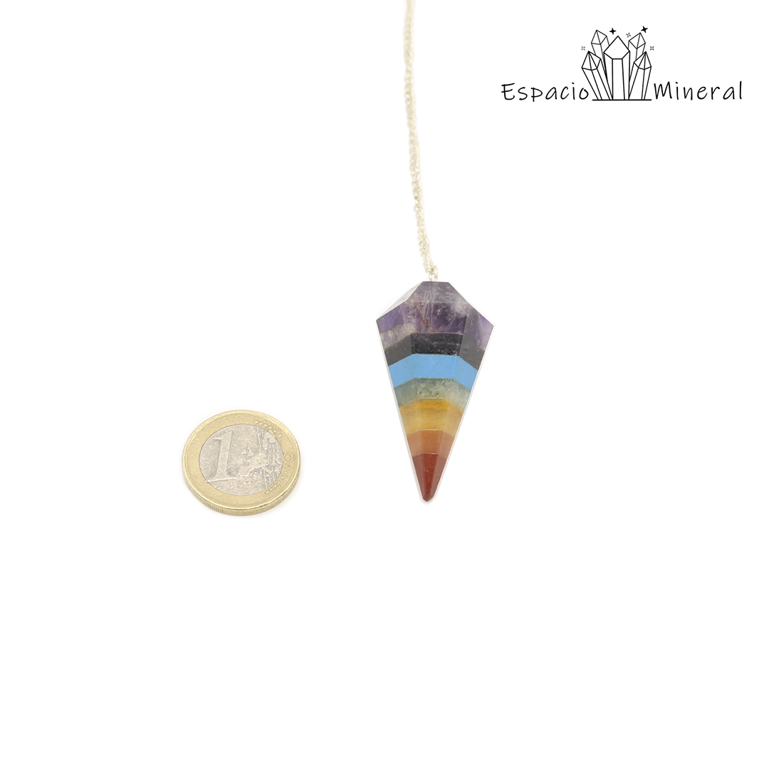 Péndulo con las piedras de los 7 Chakras. Indicado para radiestesia, Reiki, gemoterapia, etc. Nos ayuda a armonizar los Chakras.