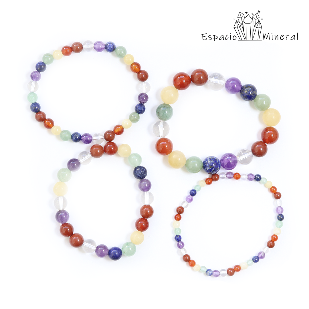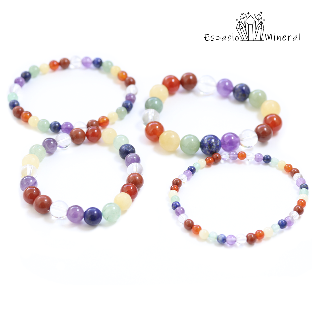 La pulsera de los chakras nos ayuda a mantenernos equilibrados. Armoniza cada chakra, los alínea, limpia y desbloquea, mientras nos permite tener mayor claridad mental, equilibrio emocional y energético. Cada mineral, aporta luz a cada uno de nuestros chakras.